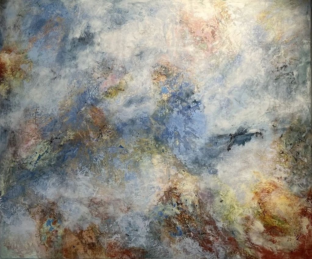 The Loneliness of the Soul' is a multi-layered cold wax mixed media painting on a 120 x 120 cm panel.